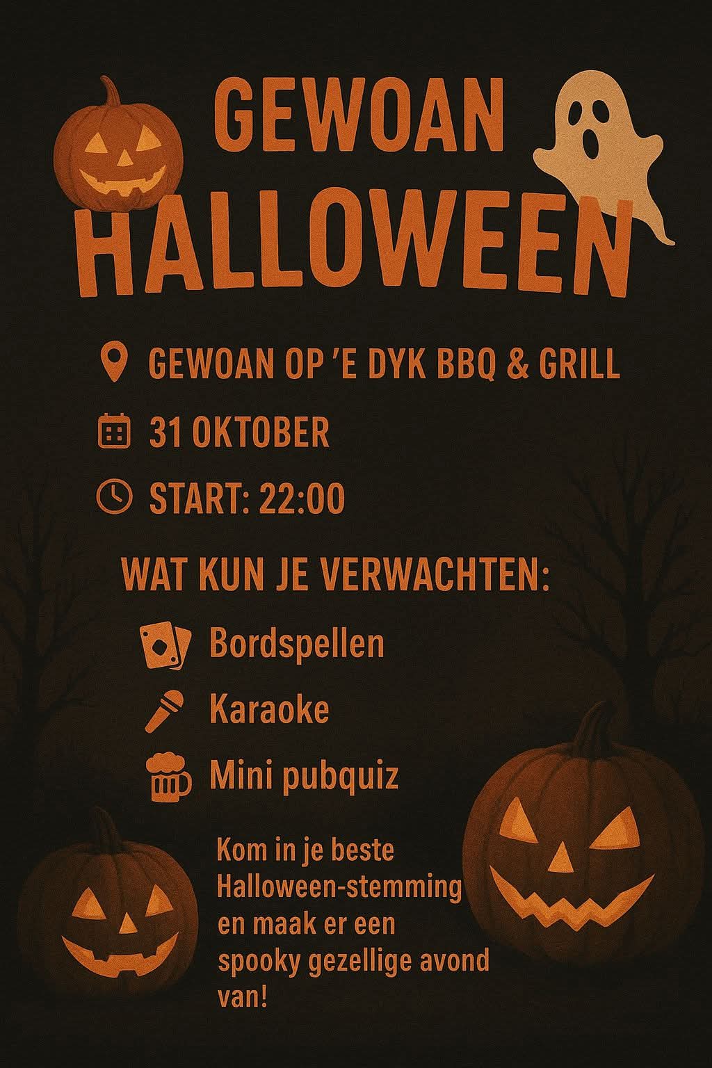 Welkom bij Gewoan op ‘e Dyk BBQ & Grill! Wat leuk dat je ons hebt gevonden. Bij ons draait het om goed eten, gezelligheid en het gevoel van thuiskomen. Geniet van onze gerechten van de BBQ & Grill — met liefde bereid, vol smaak en zonder poespas. Neem plaats, ontspan en geniet van het prachtige uitzicht over de historische binnenstad van Dokkum. Gewoan lekker, gewoan samen.